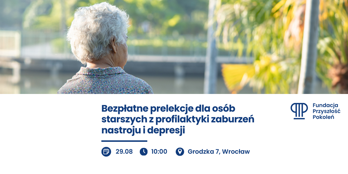Już 29 sierpnia o godz. 10:00 zapraszamy seniorów na wyjątkowe spotkanie poświęcone profilaktyce zaburzeń nastroju i depresji. Spotkanie odbędzie się w siedzibie Fundacji Przyszłość Pokoleń przy ul. Grodzkiej 7 we Wrocławiu.
