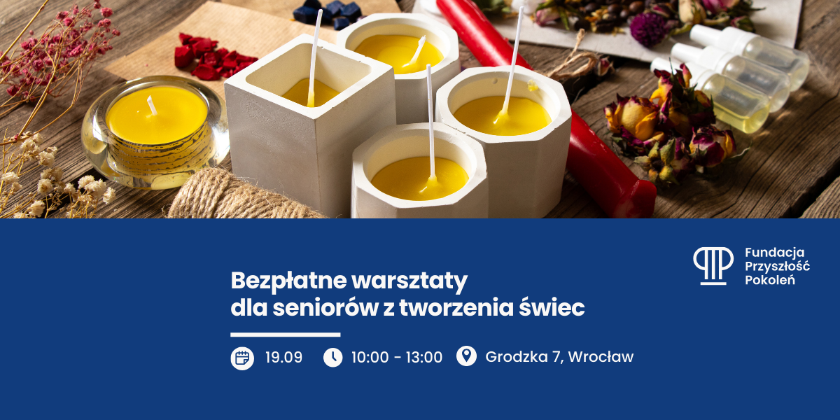 Już 19 września o 10:00 zapraszamy seniorów z Wrocławia na kolejne kreatywne warsztaty! Tym razem wspólnie stworzymy piękne, ręcznie robione świece.