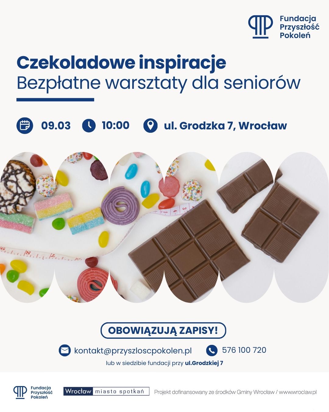 Zapraszamy seniorów i seniorki z Wrocławia na warsztaty kreatywne „Czekoladowe inspiracje”.![]()