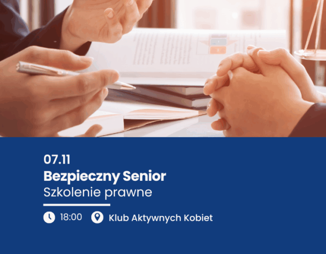 Serdecznie zapraszamy wszystkich Seniorów i Seniorki na bezpłatne szkolenie poświęcone bezpieczeństwu prawnemu osób starszych w Klubie...